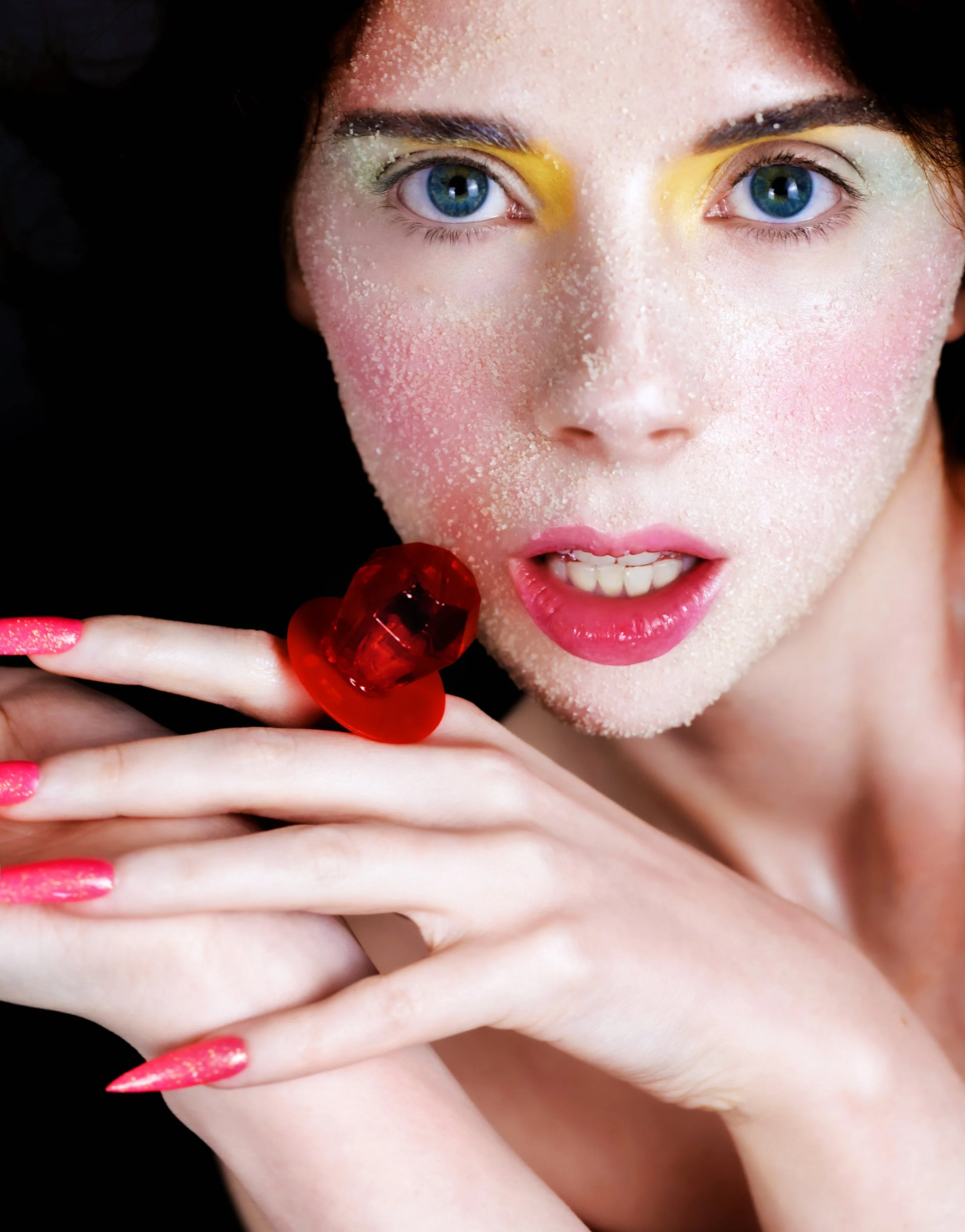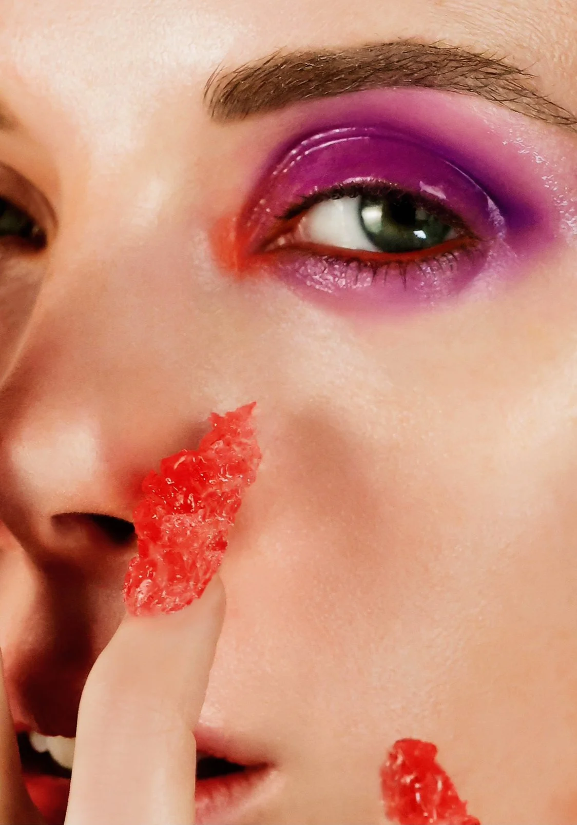 “Bad Habits” is a beauty editorial examining how our less-than-healthy habits can impact the skin. Through the use of bold colors, varied textures, and visual elements that reference those indulgent (and undeniably delicious) habits—like sugar and pizza—we explore how to adapt and optimize a beauty regimen to counterbalance them. The piece balances playful decadence with the call to make sure to incorporate practical skincare insight, showing ways to make the most of your routine even when temptation wins.